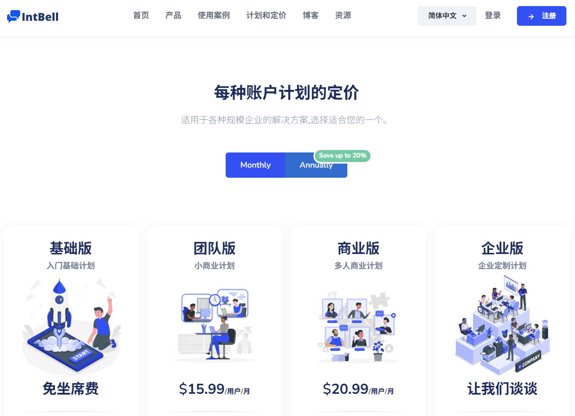 IntBell的定价结构充分考虑了企业的成本效益,特别是年付方案能带来显著的节省: