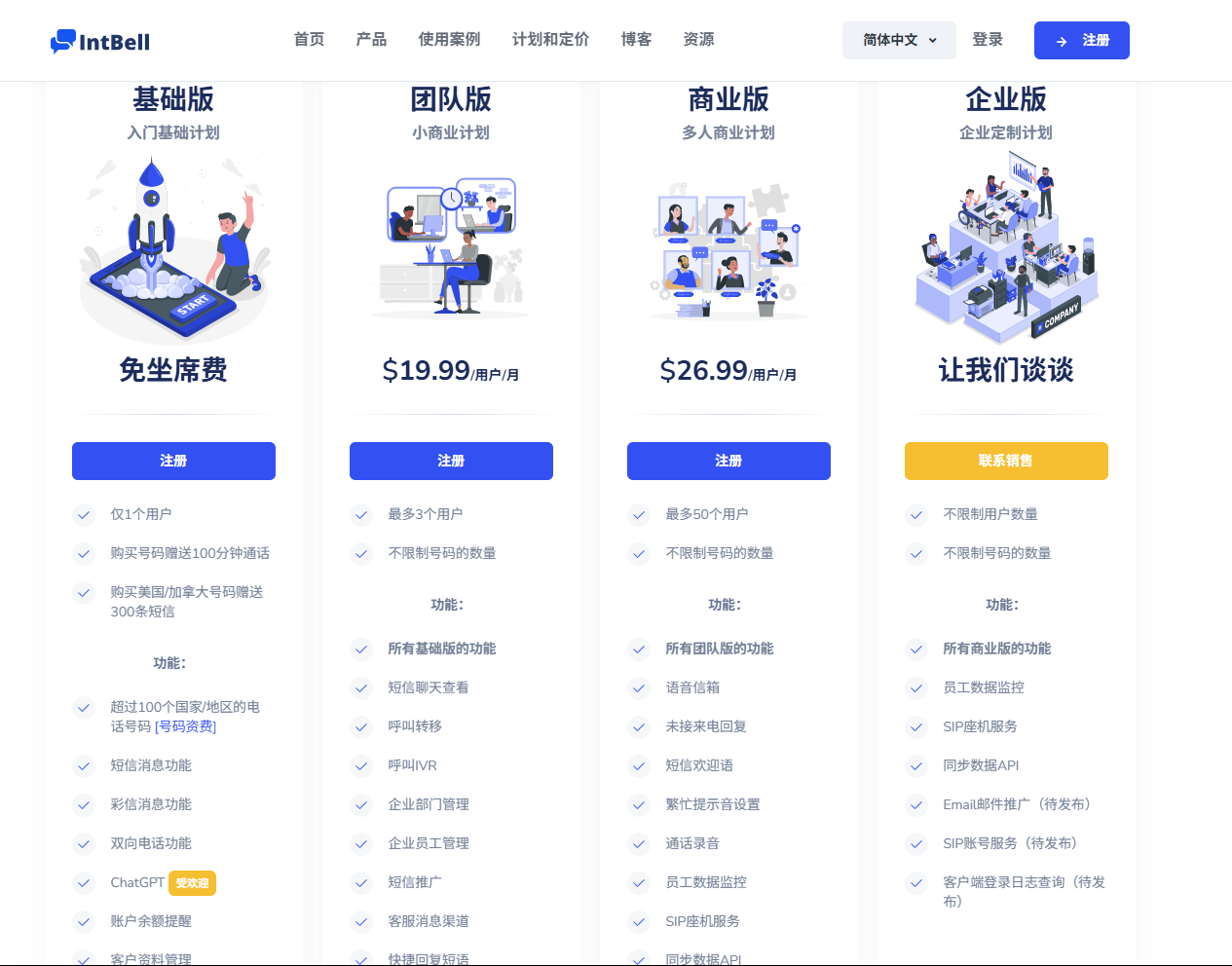 在全球化商业环境中,高效的国际通信能力已成为企业拓展业务的重要支撑。选择适合的通信解决方案,不仅能够显著降低运营成本,还能提升客户体验和团队协作效率。IntBell通过四种不同层级的账户计划,为企业提供了一站式的通信解决方案。