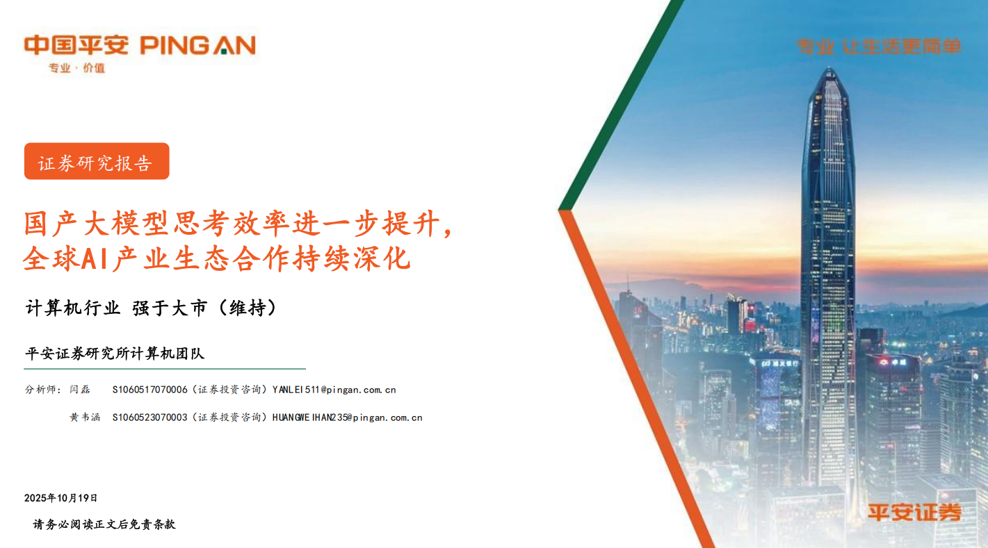 计算机行业国产大模型思考效率进一步提升全球AI产业生态合作持续深化